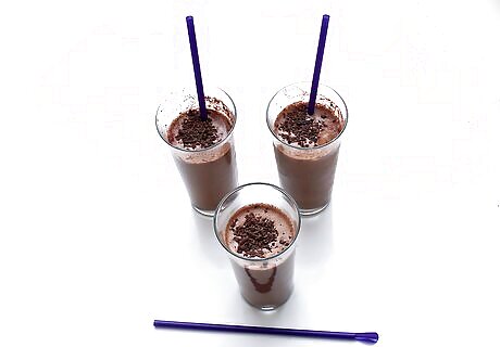 Blend the classic mocha smoothies. Put the lid on the blender and blitz the smoothies until the ice is completely blended and the ingredients are combined. Remove the lid and pour the smoothies into two large glasses. Serve the smoothies immediately before they begin to separate. Consider garnishing the classic mocha smoothies with a drizzle of chocolate syrup.