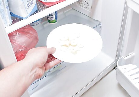 Cut and freeze the bananas. Peel 2 small bananas or 1 large banana. Use a knife to cut the bananas into small slices. Lay the banana slices on a baking sheet or large plate and put the slices in the freezer. Let the bananas chill until they're completely frozen. Try to freeze the bananas the night before you want to make the smoothies. Or quickly chill them for a few hours before you need them.