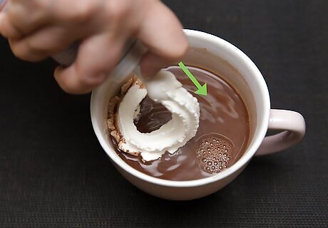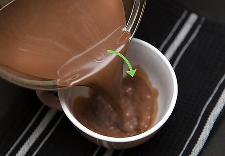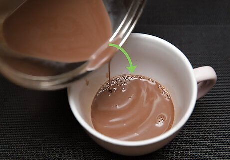 Pour the mixture into 2 mugs. Simply pour the hot chocolate straight from the pot and into the mugs. If the saucepan is too heavy for you to lift, use a soup ladle to scoop up the hot chocolate, and transfer it to the mugs.