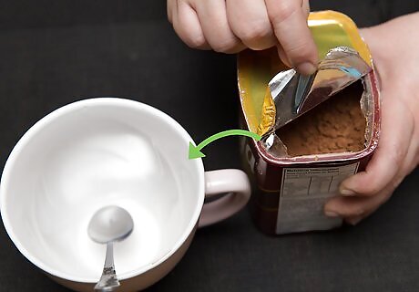 Tear open a packet of hot cocoa mix and pour the powder into a mug. If your hot cocoa mix comes in a box, measure out 2 tablespoons. Adding the powder first will help it mix better when you add the milk, water, or coffee.