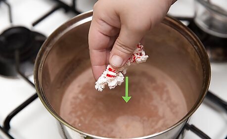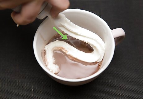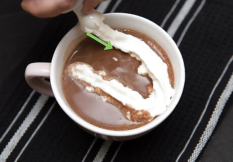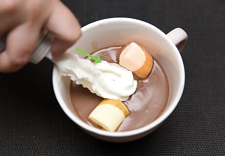 Garnish and serve the hot chocolate. Swirl some whipped cream on top of the hot chocolate, and add a sprinkle of crushed candy cane. If you don't like whipped cream, toss in a few marshmallows instead. For a more festive treat, stick a candy cane into the hot chocolate.