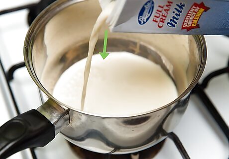 Pour 2 cups (475 milliliters) of milk into a small saucepan. You can use any type of milk you want, but whole milk will give you a richer hot chocolate than skim milk.