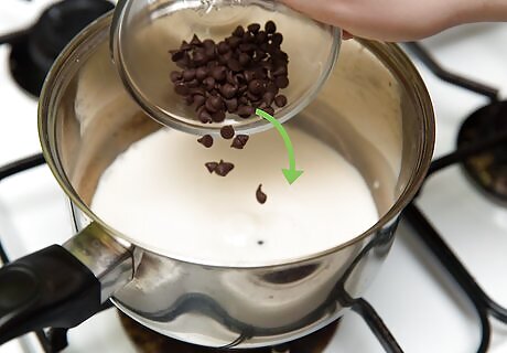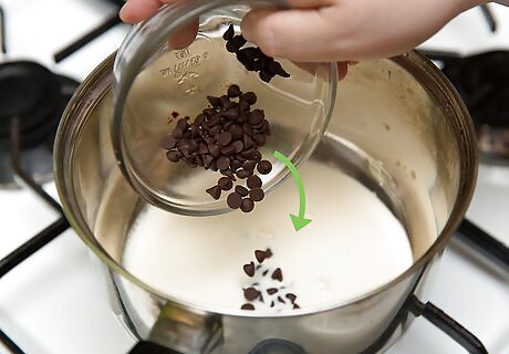Add the chocolate to the saucepan. The chocolate will give you a richer hot chocolate once it melts, as opposed to powdered cocoa.
