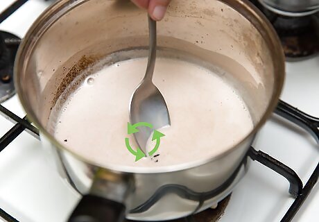 Turn the heat to low, and cook for 5 minutes. Stir the mixture with a whisk to keep it from scorching.