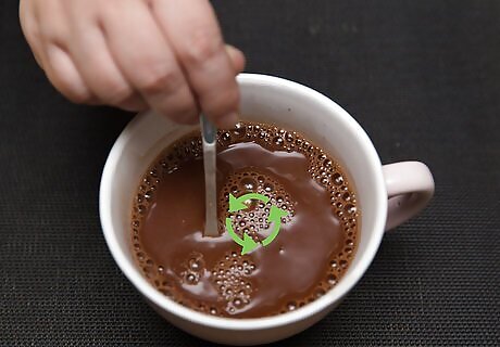 Heat 1 cup (240 milliliters) of water, milk, or coffee. Any of the three will work. Water will give you the most basic cocoa, while milk will give you the richest. If you like coffee, you might like a peppermint mocha instead. Whatever you choose to use must be very hot or the powder won't dissolve well. Heat water in a kettle or in the microwave (about 1 to 2 minutes). This will give you a lighter hot cocoa. Heat milk in a saucepan or in the microwave(about 1 to 2 minutes). This will give you a richer, creamer hot cocoa. Brew a cup of coffee if you want a peppermint mocha. For a richer peppermint mocha, add a splash of milk or half-and-half.