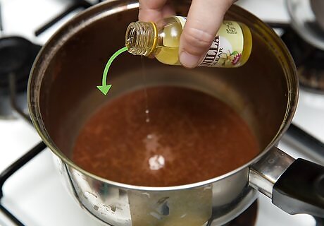 Stir the mixture until the sugar dissolves. Keep an eye on the saucepan, and don't let the sugar burn. If it does, it will caramelize and ruin the flavor.