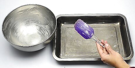 Preheat the oven and grease the baking pans. Set your oven temperature to 350 degrees Fahrenheit (177 degrees Celsius), and allow it to heat fully. Next, grease two 15-inch by 10-inch (38-cm by 25-cm) shallow baking dishes with nonstick cooking spray and set aside. You can grease the baking dishes with softened butter if you prefer.