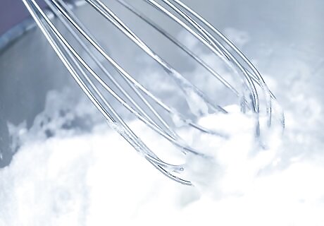 Beat the egg whites. Place the egg whites and salt in a large bowl. Beat the mixture on high until stiff peaks form. Set this mixture aside. To determine if you've made stiff peaks, turn off the mixer and lift your beater up. If the egg whites are firm and hold their shape, you're made stiff peaks.