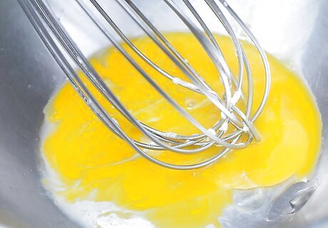 Beat the egg yolks. In a separate bowl, whisk the egg yolks till they're combined. You can use the same beaters that you used to beat the egg whites. But be sure that you don't do it the other way around, or your egg whites won't whip.