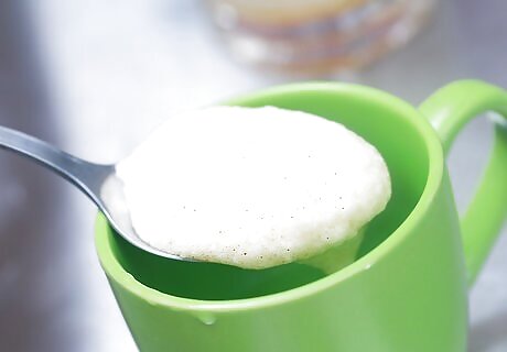 Place Tom and Jerry batter in your mug. Take your warmed mug and pour or scoop 2 tablespoons of Tom and Jerry batter into it. If you froze the batter, you'll have to just scoop it out. Make sure the liquid you add to it is really hot, since the frozen batter might cool off your drink too much.