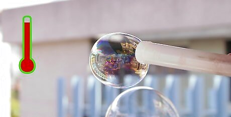 Make bubbles on warmer days. In general, warm and humid days will produce the best bubbles. While the solution will work in any weather, your bubbles should last longer during warmer months. You may want to play with your bubble solution inside on windy days. Wind can pop your bubbles.