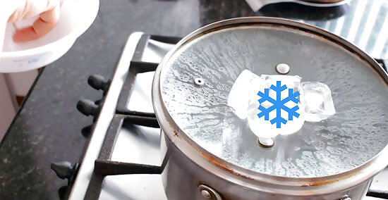 Distill your water. Some people find the minerals from tap water can affect the quality of bubbles. You may want to purchase distilled water for the project. If you can't find distilled water at the store, you can distill water yourself at home. Pour your water into a large pot with a glass lid. Do not fill the pot more than a third of the way full. Place a small glass bowl in the center of the pot. Then, put the pot's lid on upside down. This means the handle should be in the water. Have an adult bring the water to a boil and, once it's boiling, turn the heat down to a simmer. Cover the lid with ice cubes. This will cause water to form on the lid and drip into your bowl. Watch the pot, adding more ice cubes as they melt. Once the bowl is full, you can remove the bowl. Use the water in the bowl in your project.