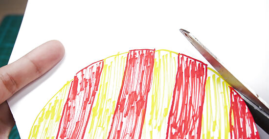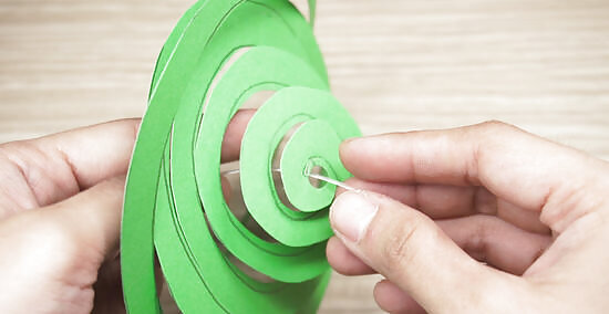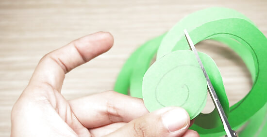 Cut along the spiral line to create a snake effect. This creates 1 long paper snake. If you’re having trouble cutting along the tight circles with your scissors, try using a smaller pair of scissors.