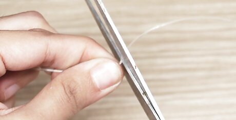 Thread the string through the holes to create a loop and knot the ends. Push the string through 1 hole and then back toward yourself through the other hole. If you are having trouble poking the string through the holes, lick the end of the thread and then squeeze it between your fingers. This makes the end narrower and easier to thread. If your string won’t fit through the hole, use thinner string or use a skewer to make the hole bigger. Tug on the string to make sure that your knot is secure.