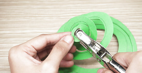 Punch a hole at the tip of the whirligig. Locate the middle of the spiral and then use a hole punch to make a hole in the middle of the card. Choose a hole punch size that is wider than your string. If you don’t have a hole punch, use a skewer to poke a hole through the paper instead.
