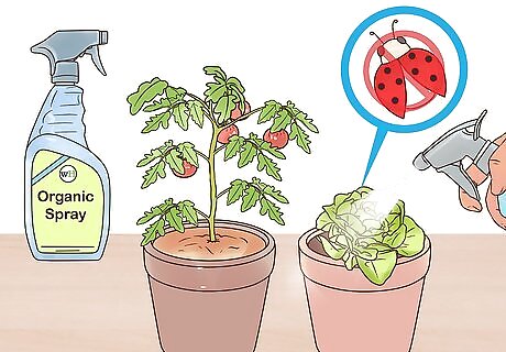 Use an organic spray to help with pest control. Once your garden is flowering nicely, it’s likely that you will encounter pests attempting to eat and destroy your garden. If you are encountering caterpillars and other pests, using an organic salt spray, mineral oil, or garlic spray will help keep them at bay. Many insects such as ladybugs, bees, and dragonflies are actually necessary for your garden so don't panic if you see these buzzing around.