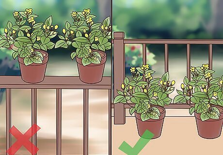 Place the plants in a safe location away from any ledges. When plants are located outside, they have to endure any weather you experience. This obviously includes wind. Many plants that are the right size for a balcony are also small enough to get blown over by a strong gust of wind. If a plant is near a ledge and it gets blown over by wind or some other force, there is a huge falling risk to any person or thing that may be below it. If you do happen to store your plants above solid ground in any way, they should be securely fastened in and well supported.