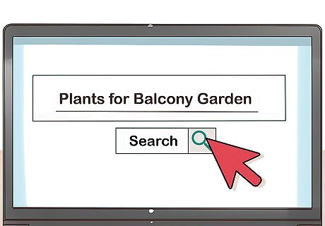 Research what kind of plants you’ll be able to grow in your climate. There are several factors included in this. The main ones are how much space the plants will need, and what kind of weather conditions they can grow in. Weather is something you have no control over so, for example, buying a plant that can’t handle any rain when you know you live in a rainy climate is pointless, as it will die quickly. Some plants start small and grow to be very large, others start large and don’t grow at all. When you buy plants, make sure you check with a store-clerk or the information section to see how large the plant will grow to be and that your balcony can handle that size. A couple of different plants to try might be Oleanders for areas with high wind and lots of sun, or Red-leaf bananas for less light and less wind.