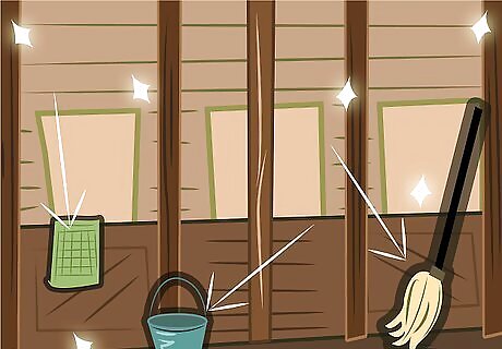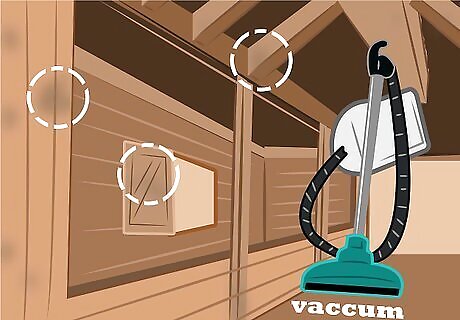 Vacuum the rafters, walls, and window ledges in the stables regularly. During your vacuuming, include any room that shares the same air space as the stables (e.g. the tack room).