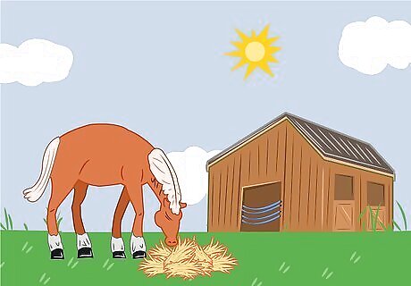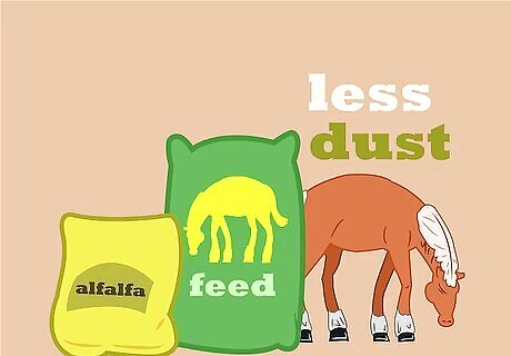 Feed from the ground level. This process prevents excess dust and other irritants from being inhaled while your horse is eating.