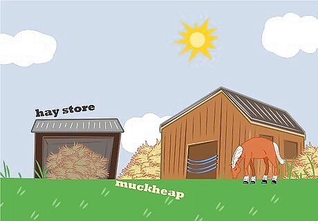 Build the muck heap and hay store area downwind. Bagged bedding and haylage are safe to store near the horses.