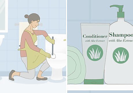 Clean the property thoroughly. Make sure that your guests aren’t walking into a dirty property by cleaning it thoroughly before accepting your first rental. You can either deep clean the unit yourself, or hire a professional cleaning service. Guests will notice a dirty bathroom immediately. Thoroughly clean the toilet, floor, tub, and tiles. Replacing the shower curtain is a great way to make the bathroom pop like it’s brand new.