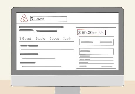 Set the price based on comparable units in your area. To figure out your pricing, go on Airbnb and search for similar units in your area. If you have 2 bedrooms available, look for other 2-bedroom units. If your home is a private residence, filter out shared living spaces. Set your price low enough so that you’re competitive, but not so low that you’re giving away potential earnings. When you’re starting out, potential guests may be scared off by your lack of reviews. If people aren’t renting your property out, consider lowering your price to $20-40 a night so that you can build your reviews up before raising the price. Airbnb takes 3% of your earning, so work that into your price. There may be regional taxes or fees built in as well, but some of these you’ll need to calculate yourself depending on where you live.