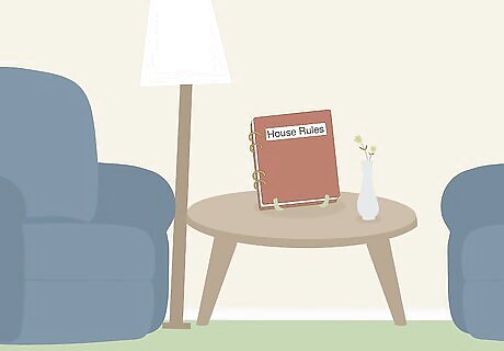 Post answers to common questions around the home. Next to the door, post your house rules so that guests don’t need to go online to refer to them. Include the Wi-Fi password and the name of your network so that guests can get online. If there are tips or tricks on operating the remote control for the TV, post it next to the television screen where guests can easily find it. Include information on how to turn the heat or air conditioning on next to your thermostat. If possible, print each placard on high-quality cardstock and get them laminated so that you can wipe them off if they ever get dirty. Many hosts choose to combine all of this information into a binder. Feel free to do this instead, but make sure that the binder is easy to spot.