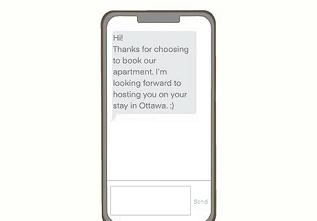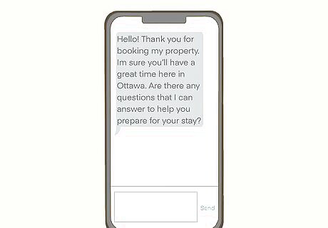 Reach out to guests as soon as they book your unit. In the Airbnb app, send a note to guests that book your property explaining what your check-in process is and where you’re located. Be enthusiastic and thank them for booking your property. Explain that they can reach out with any questions that they have. A simple hello is perfectly fine. For example, you may say, “Hello! Thank you for booking my property. I’m sure that you’ll have a great time here in Ottawa. Are there any questions that I can answer to help you prepare for your stay?”