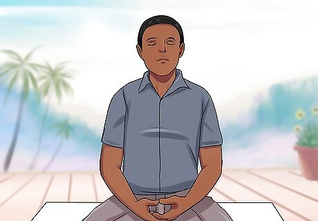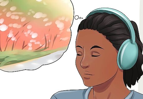 Use guided imagery. Guided imagery, also called visualization and guided meditation, is a stress relieving technique that can help you calm your mind and body. When using guided imagery, your mind comes up with images of relaxing places or situations that make you happy or calm you. During guided imagery, you use all five senses. If you are new to guided imagery, you can use an audio track or video to walk you through the meditation process. You can find many of these online. For example, you may close your eyes and visualize you are at a serene beach. You come up with the image of gentle waves on the beach, hear the soothing sound of the waves crashing, feel the sand under your feet and ocean breeze against your skin, and smell the salt on the air.
