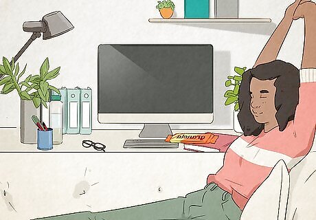 Create a productive workspace for yourself. If you work well with music, play it in the background instead of using headphones. If you can’t deal with any background noise, invest in noise-cancelling headphones or find a quiet environment, like a library. Steer clear of strong smells, low lighting, extreme temperatures, and chairs that are too comfortable, or not comfortable enough. If social media is too distracting, zip your phone into your bag. Experiment with different workspaces to find what works best for you.