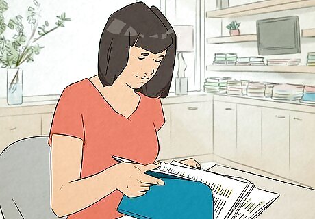 Designate a study space. Studying in a place where you will feel relaxed and sleepy, like your bed, is not the best idea. Instead, find a location that has a desk, good lighting, and minimal distractions. If you have a chatty roommate, head to a campus library or dorm study space.