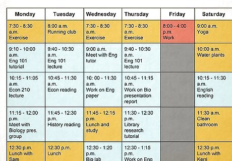 Leave room for flexibility. Things happen. You’ll get sick, have a family emergency, or have to cover for a friend at work. If you plan some flexibility into your weekly schedule, you’ll manage to stay on top of your schoolwork while navigating life’s curveballs.