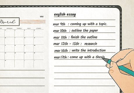 Break large tasks into manageable chunks. A 20-page research paper or 10 page math problem set feels like an impossible task when you first look at it. Instead of getting intimidated by big projects, break them down into a series of small steps. For instance, if you’re starting a paper from scratch, schedule time on the first day for coming up with a topic. The second day, start a paper outline, and on the third day, finish the outline. For the next four days, you can start researching.