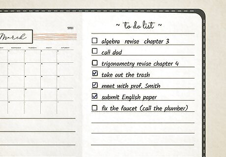 Create a daily to-do list. At the beginning of each week, sit down with your calendar and come up with a list of tasks you’d like to accomplish each day of that week. This will allow you to see how you will achieve your weekly goal. Prioritize your daily tasks by marking them with an H, M, or L for high, medium, or low importance.
