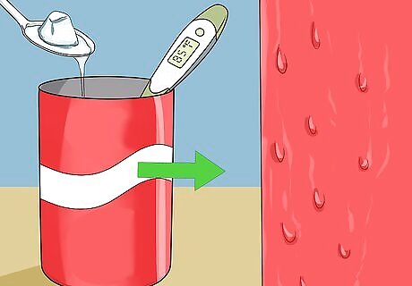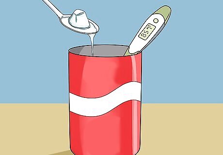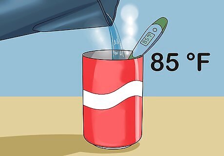 Fill the can with warm water. Take your can or bucket and fill it three-quarters of the way full with warm tap water. Use tap water with a temperature of about 85 °F (29 °C)). Place the thermometer into the aluminum can.