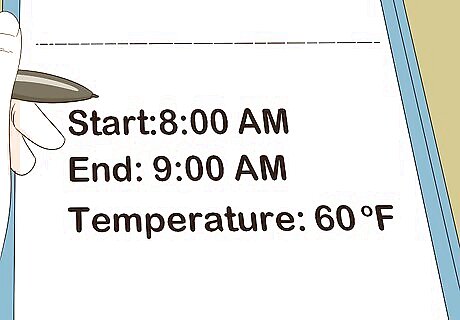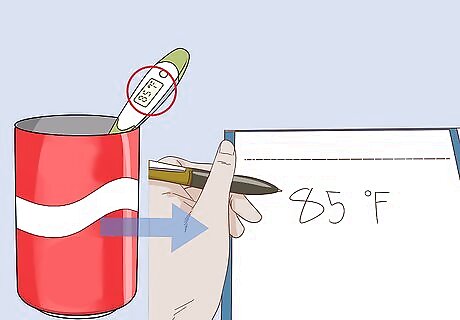 Record the starting temperature. When conducting scientific experiments and measurements, it’s best to record the starting temperature. Look at the thermometer in the cup and jot down the starting temperature and time.