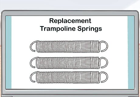 Determine how many replacement springs you need. Count how many springs need to be replaced on the trampoline so you order the correct amount. The condition of the trampoline, as well as the shape and size, will also determine how many springs you will need to replace. Most trampoline manufacturers sell replacement springs in sets of 5-15. If you need just 1 replacement spring, order a set of 5 so you have extras on hand.