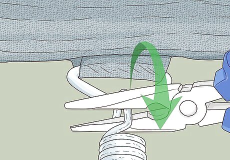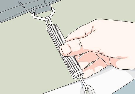 Unhook the first spring from the trampoline with flat-head pliers. Grip the hook on the spring that attaches to the loop on the trampoline mat with the pliers. Then, carefully pull the hook off the loop, detaching the spring from the mat. It should pop off. Do not allow anyone on the trampoline when you remove the spring, as you want the trampoline to remain loose, not taut.