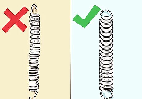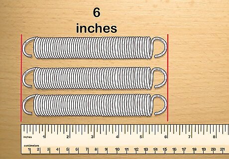 Measure 2-3 springs to confirm the measurements. Confirm your measurement is correct by checking several other springs on the trampoline. Check that the springs are not warped or stretched out when you measure them. The springs on the trampoline should all be the same size. Most trampoline springs range in size from 3.5 to 8.5 inches (8.9 to 21.6 cm), depending on the size and shape of the trampoline.