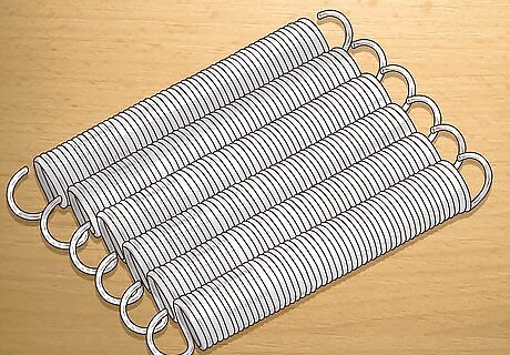Get replacement springs in the correct size online or in stores. Make sure you order the correct size so it will fit your trampoline. Good quality trampoline springs will be fully galvanized to protect them from water and moisture. Some springs will have an extra coating to ensure they can stand up to weather and rain. Make sure you get the same type of spring that is already on your trampoline for the replacements, as this will ensure the springs are the same model.