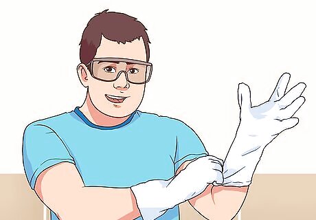 Wear gloves and safety goggles to protect yourself. The springs on the trampoline can be rough on your bare hands, especially if there are no protective coverings on the hook ends of the springs. Wear gardening gloves or thick work gloves to protect your hands. Get safety goggles so your eyes are protected in the event the spring flies in your face.