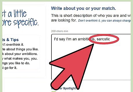 Carefully decide how you can put your best foot forward. What people see of you on the Internet will determine how you will be perceived--there are no second impressions in the online world. If you're posting a picture of your face for a dating site, choose a flattering image taken with a quality camera. If you're writing a short description of yourself on a forum, choose to highlight your most exciting and unique interests. Write in complete sentences and with proper spelling. Keep everything short and to the point; people often spend little time composing their judgment of you. What your "best foot" is depends on the online venue. Before creating your real profile, it can help to create a blank profile to browse a site--this way you can see what kinds of profiles are expected of users.