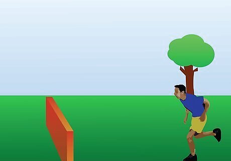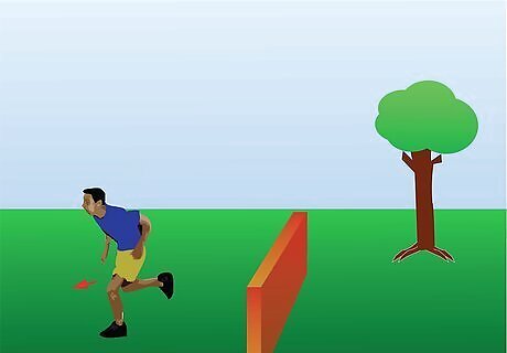 Run up to the obstacle at a medium rate, somewhere between a jog and a run.