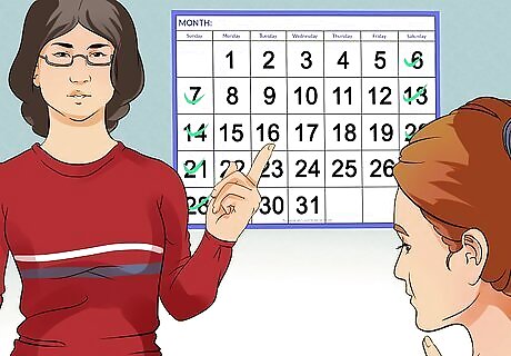 Set reminders. Teenagers often have trouble remembering, simply because of how their brains are wired. Occasionally reminding your teen of a deadline or important date can be helpful. Between school, extracurriculars, and a social life teenagers have a lot to keep track of. They may occasionally forget certain obligations and might need some extra help staying on track. Visual aids, like charts and calendars, can be helpful. Establishing certain routines, like having quiet time during certain hours of the day for homework, can also help your teen stay on task. Constant verbal reminders can come off nagging. As many teens have a rebellious streak, they may resent being told what to do. It's better to use visual clues and establish routines, teaching by showing rather than telling.