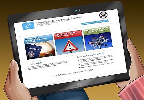 Register for the Smart Traveller Enrollment Program if you’re a US citizen. The STEP program allows U.S. citizens to enroll with a local embassy or consulate when they are travelling or living abroad. As a member, you will receive information, assistance, and the possibility of contacting friends and family back home in an emergency. Visit https://mytravel.state.gov/s/step to enroll. If you are not a U.S. citizen, look online for a similar program in your country.