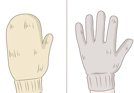 Wear gloves. Gloves can keep your outer extremities warm to avoid getting frostbite. If you don't need to use your fingers, mittens are better since they keep fingers together and trap heat more effectively than gloves. Gloves don't have to clash your entire outfit. A simple pair of white classy gloves for girls can add a nice touch, and black leather gloves for guys can make you seem cool. You can purchase "hot hands" or hand warming devices to put inside gloves. These will keep your hands warm without getting too bulky.