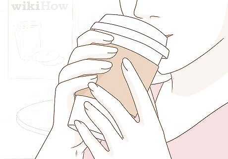 Get hot coffee. Hot coffee, tea or cocoa are excellent ways to warm your hands and taking sips of the warm liquid will warm your body. It will force you to move around in order to get the drink, and the caffeine and sugar will give you energy to keep moving. It's a win-win for staying active and keeping warm.