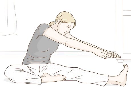 Stretch. Before you go outside, warm your body slightly by stretching your arms and legs and torso. Athletes do this to prepare for playing in colder temperatures, while also preventing injuries during the event. Try not to stretch too much before you go outside. If you begin to sweat indoors, then it will feel colder when the cool air touches the sweat on your skin.