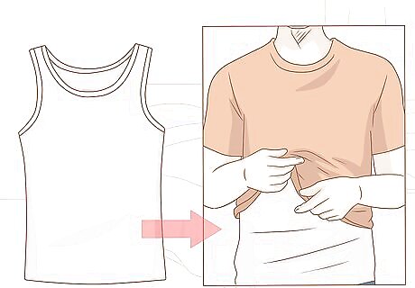 Wear an undershirt. If you're not going shirtless, wear a tanktop or thick sleeveless shirt or vest underneath your outfit. This keeps your core warmer, which can help regulate the rest of your body temperature.